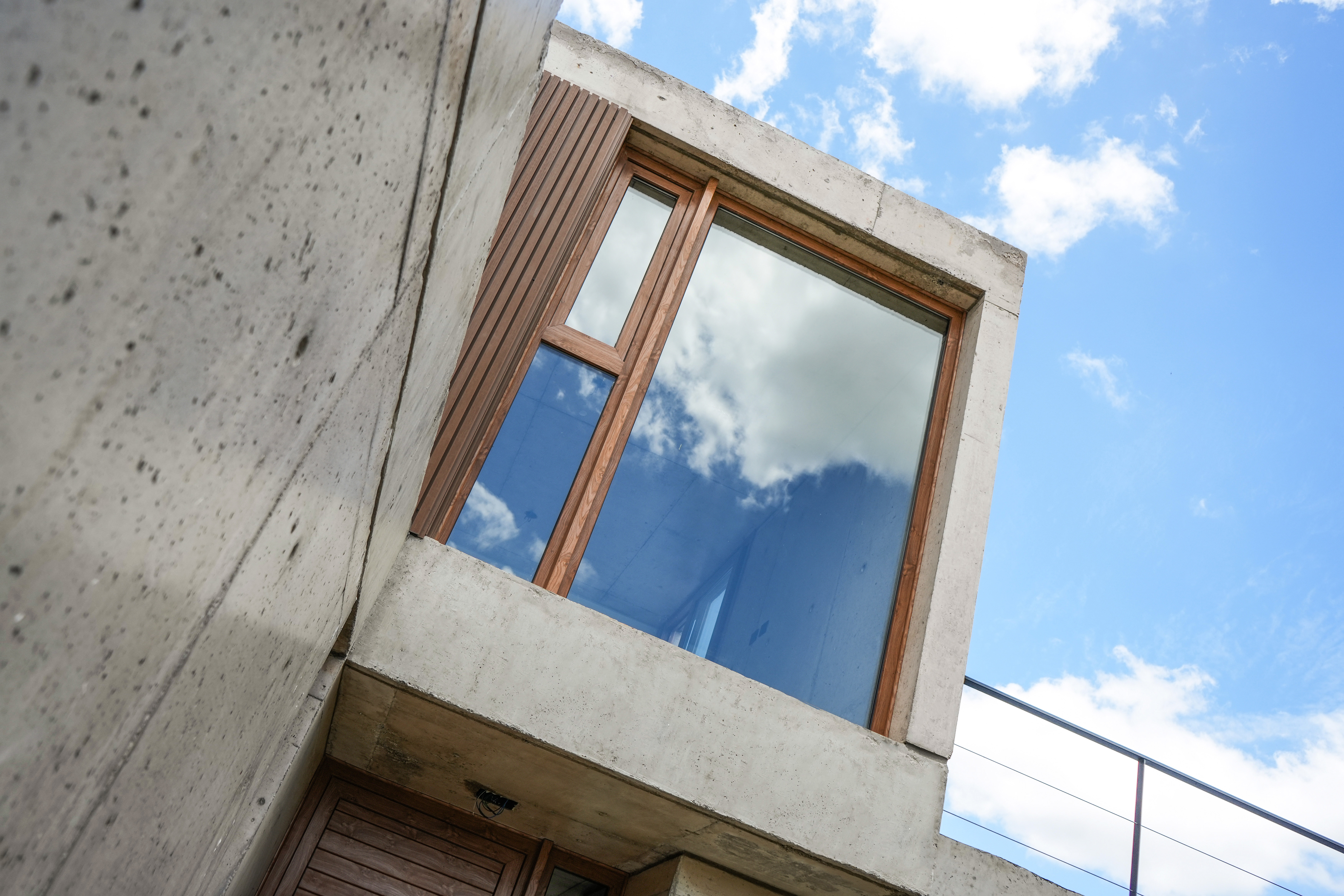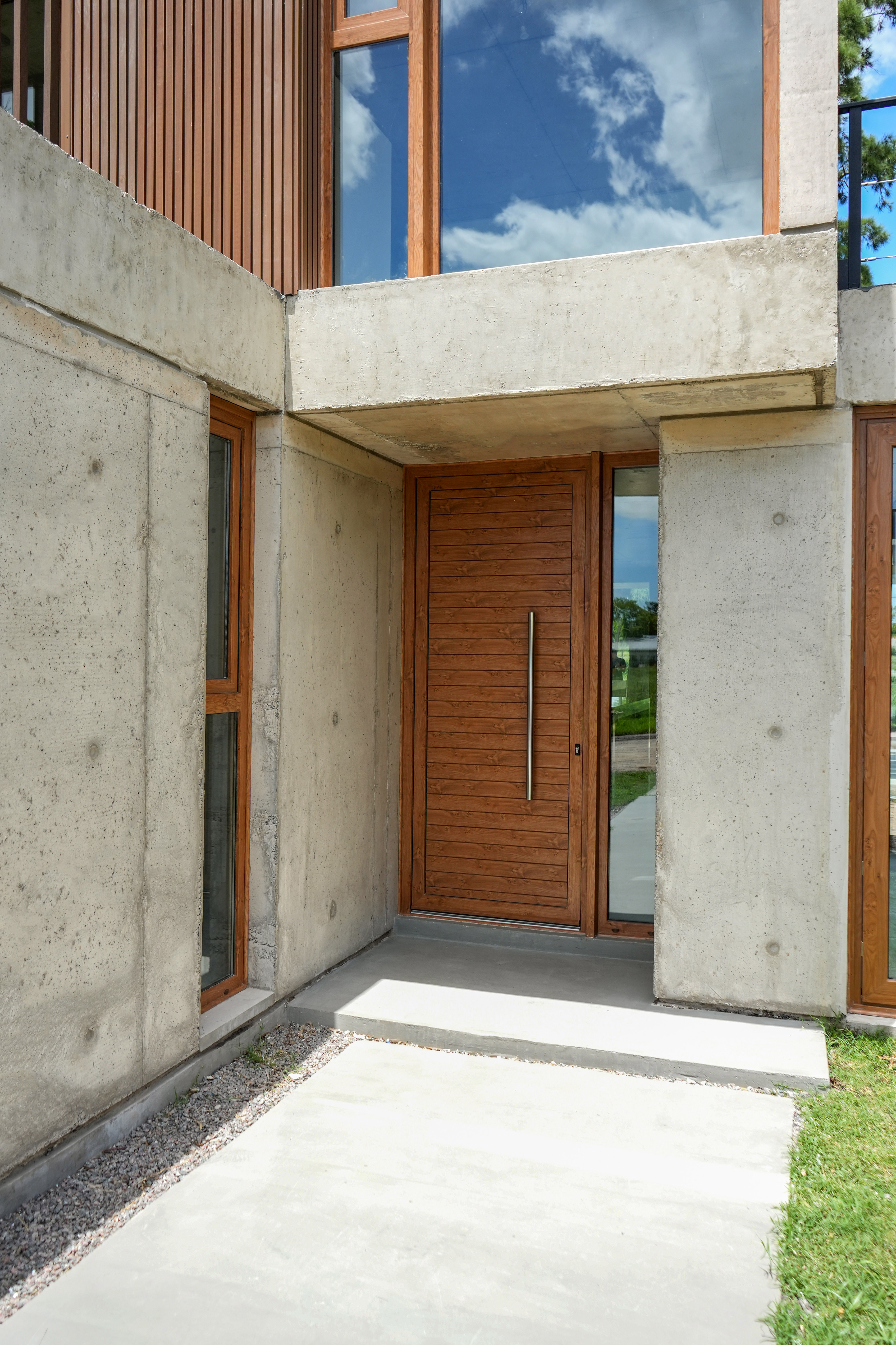 Vivienda de lenguaje contemporáneo donde el hormigón armado y la madera definen una composición equilibrada y precisa. La alternancia de volúmenes, los filtros verticales y las amplias aperturas regulan la luz y las visuales, dando forma a espacios luminosos, serenos y vinculados al entorno natural.