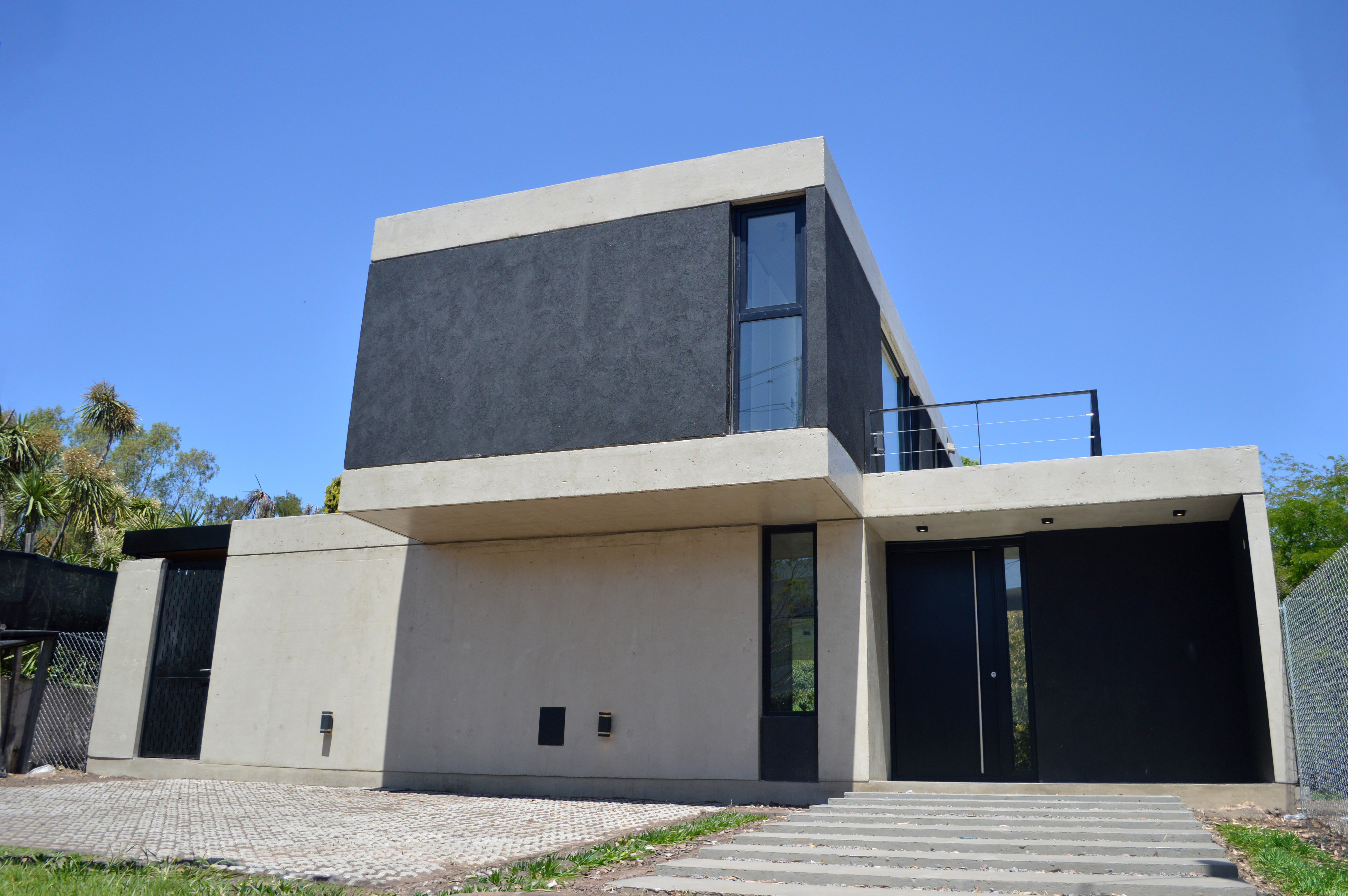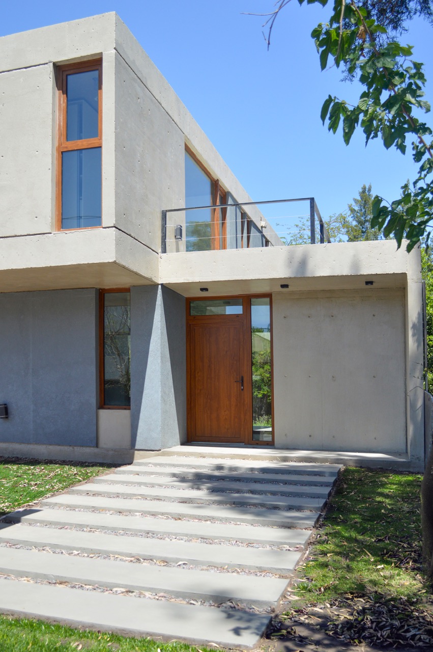 Dos viviendas que se reflejan entre sí mediante una arquitectura clara y contemporánea. Volúmenes de hormigón armado, grandes aperturas y una implantación precisa construyen espacios luminosos y equilibrados, donde interior y exterior se integran con naturalidad.